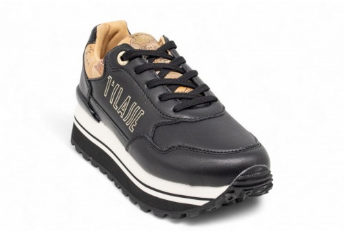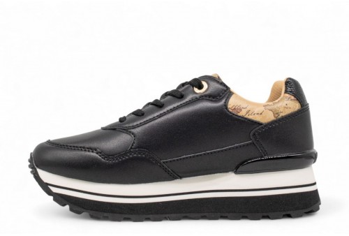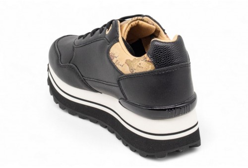ALVIERO MARTINI SNEAKERS LOGO 1C. Sneakers realizzata in eco nappa nera con inserti geo leather.Colletto imbottito. Logo lettering laterale. Fondo platform. COLORE: blk