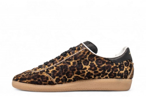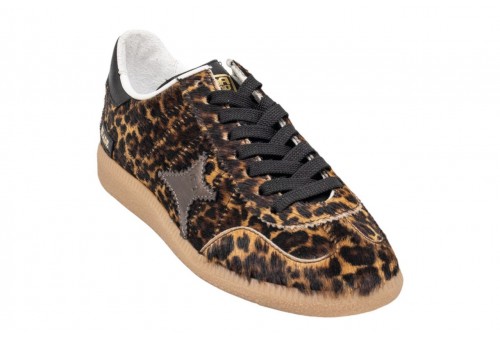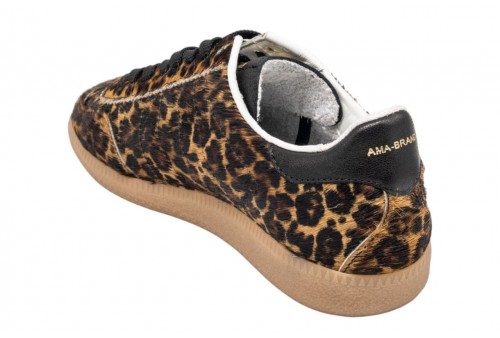 AMA BRAND DONNA 4404 BLADE LEO . Sneakers low cut realizzata in cavallino leopard. Spoiler in pelle nera. Linguetta con label logata. Logo laterale in pelle. Lacci neri.