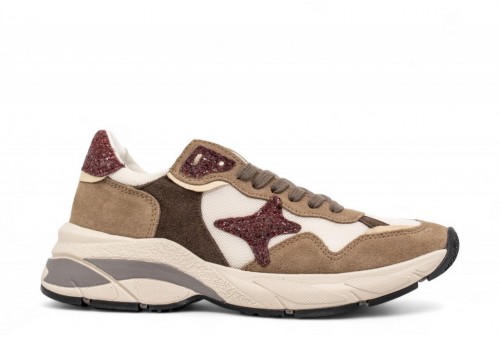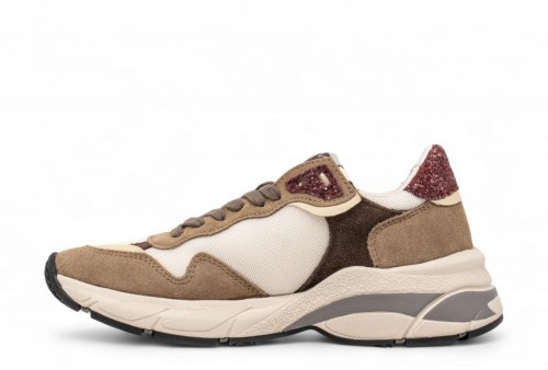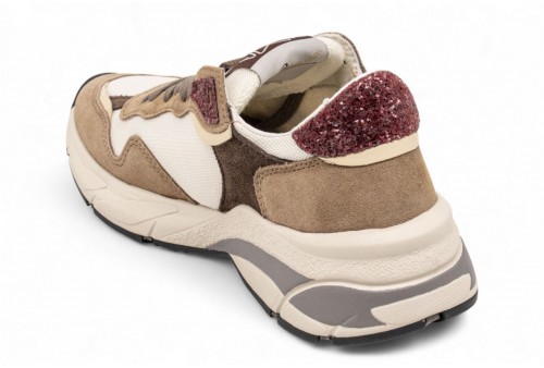 AMA BRAND DONNA SNEAKER 4442 MOON. Sneakers realizzata in pelle scamosciata ed inserti in tessuto. Spoiler e logo laterale in glitter.