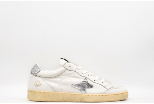 AMA BRAND SNEAKER 4112 SUN. Sneakers realizzata in pelle con logo laterale e talloncino argento. Colore: Bianco Tomaia: Pelle Fodera: Pelle Sottopiede: Pelle Fondo: Gomma Altezza: 2.5 cm Chiusura: con Stringhe Collezione: Primavera/Estate Codice: 4112