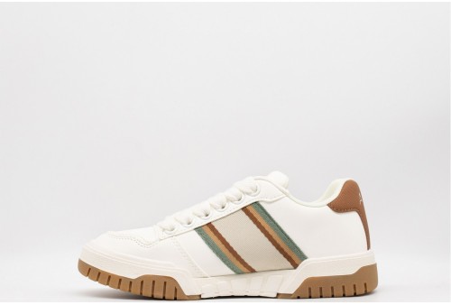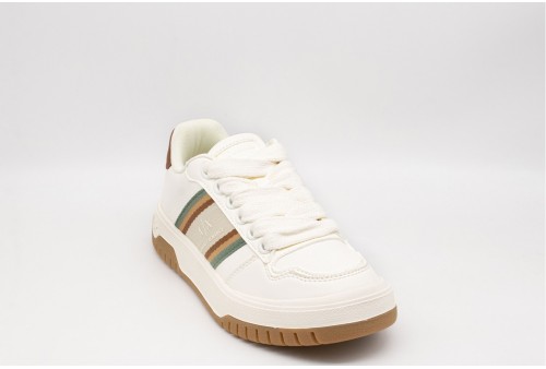 ARMANI EXCHANGE SNEAKER BANDA LATERALE. Sneaker realizzata in ecopelle con banda laterale bicolor logata . Talloncino a contrasto, nero, logato. Fondo bicolore. COLORE: BIANCO/CARAM