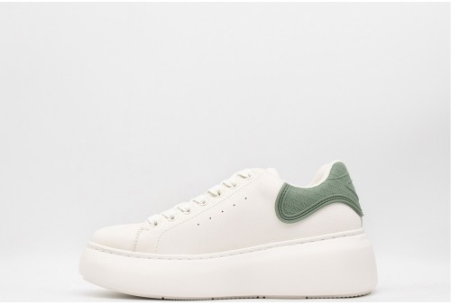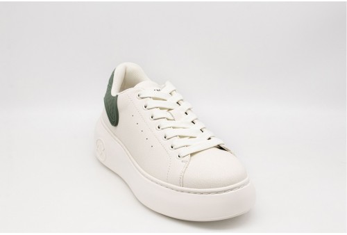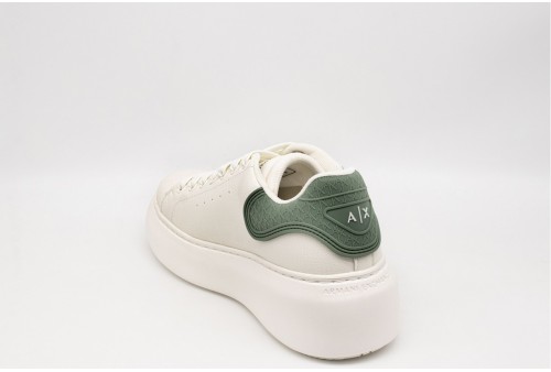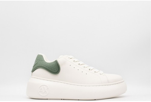 ARMANI EXCHANGE SNEAKER DONNA. Sneaker con platform realizzata in ecopelle .Talloncino a contrasto, verde, logato. Linguetta con logo . COLORE: BIANCO/VERDE