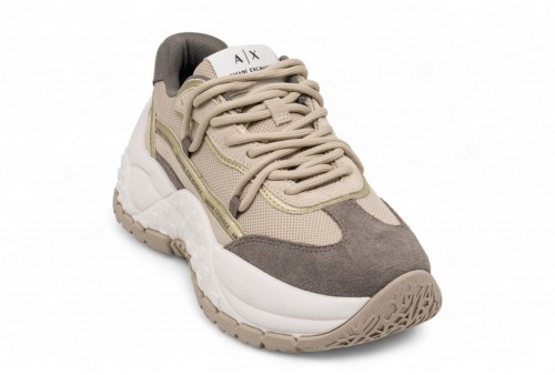 ARMANI EXCHANGE SNEAKER IN CAMOSCIO.Texture a contrasto e dettagli urban cool per una sneaker che non passa inosservata. Sneakers con tomaia in tessuto e inserti in suede. Design chunky con suola in gomma texturizzata. Dettaglio logo a contrasto lungo il profilo. Chiusura con lacci.COLORE: SAND