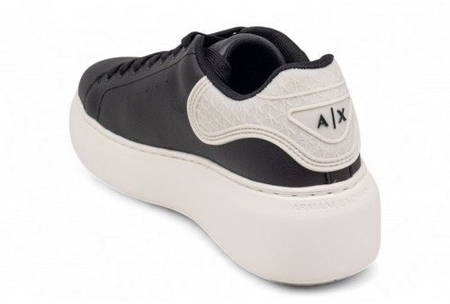 ARMANI EXCHANGE SNEAKER IN ECOPELLE. Sneaker realizzata in poliuretano. Dettaglio talloncino a contrasto. fondo platform. Chiusura con lacci.COLORE: nero