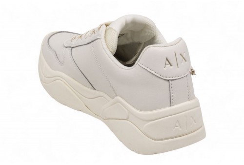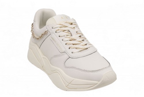 ARMANI EXCHANGE SNEAKER IN PELLE. Sneaker donna chunky realizzata in pelle con dettagli bold. Catena dorata. Logo laterale e al tallone.Chiusura con lacci. COLORE: BIANCO