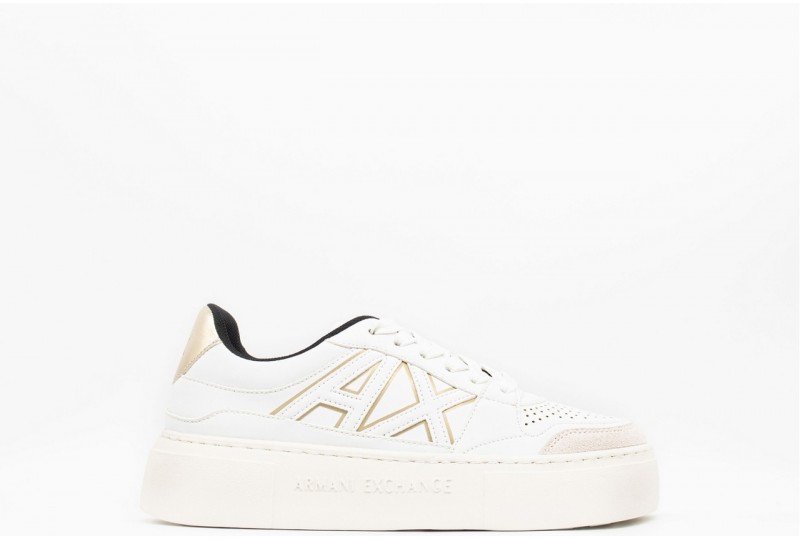 ARMANI EXCHANGE Sneakers con dettaglio sul retro. Sneakers alte femminili del brand Armani Exchange realizzate in ecopelle con logo sul laterale, inserto in oro sul retro, fodera e soletta in tessuto. I materiali della tomaia garantiscono morbidezza e resistenza per un comfort durevole. Queste calzature si distinguono per la suola estremamente morbida e ammortizzata che assicura un supporto ottimale. Tomaia: Sintetico Fodera: Tessuto Sottopiede: Tessuto Fondo: Gomma Altezza: 4 cm Chiusura: con Stringhe Collezione: primavera/estate Codice: XDX147XV830T782