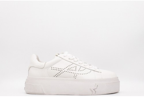 ASH SANTANA SNEAKER PLATFORM DA DONNA. Sneakers donna platform caratterizzate da tomaia in pelle total white con logo traforato sul laterale.