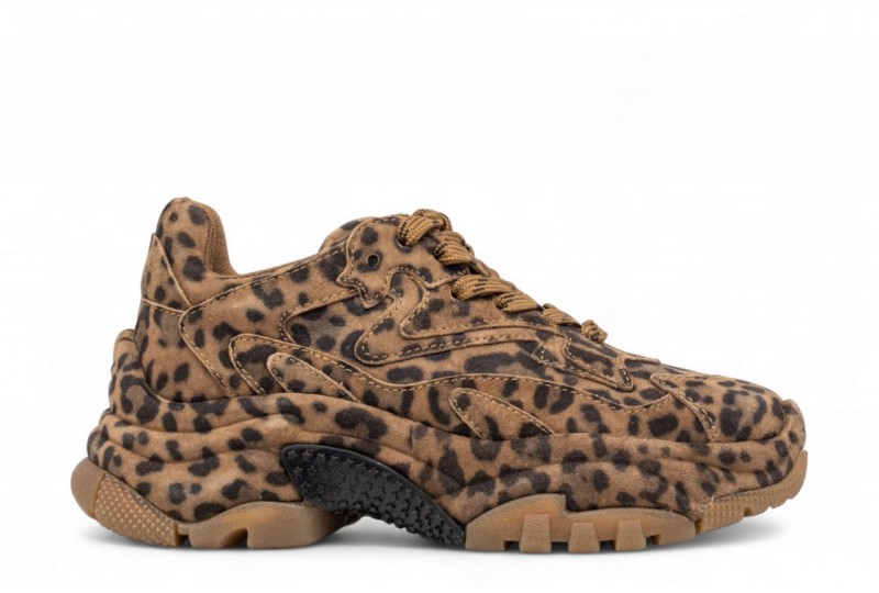 Ash Sneakers Addict BIS. Sneaker realizzata in pelle scamosciata. Dettagli multistrato e finiture tono su tono. Lacci striati in cotone. Interno in spugna morbida. Fussbett estraibile da 2 cm. Suola chunky in gomma dal design massiccio. Punta arrotondata. COLORE: leopard