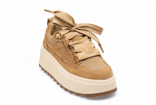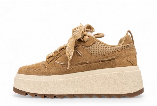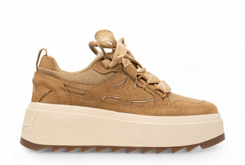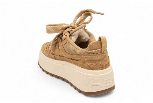 Ash Sneakers movie. Pelle scamosciata e inserti in mesh.Maxi lacci in cotone a trama larga. Punta arrotondata e cuciture a vista. Fodera e soletta in tessuto tecnico traspirante.Maxi suola chunky in gomma con battistrada dentellato. Logo ASH in rilievo sul retro della suola COLORE: camel