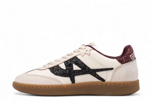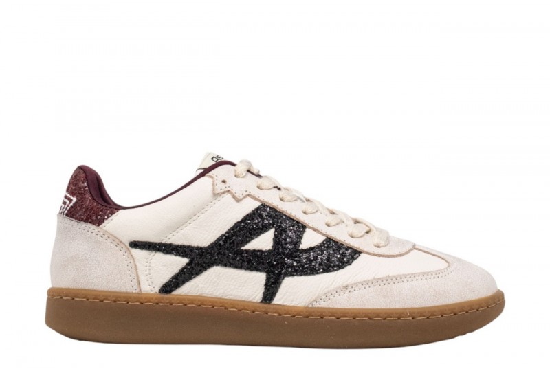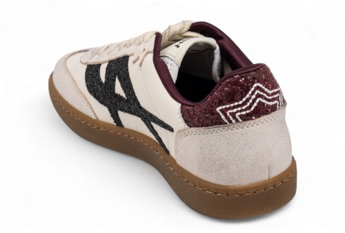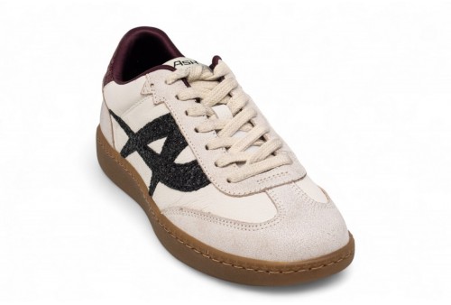 Ash Sneakers SUNSET. Sneaker donna realizzata in pelle con inserti in pelle scamosciata. Dettagli glitterati. Punta arrotondata e cuciture a vista. Fodera e soletta in tessuto tecnico traspirante.COLORE: beige