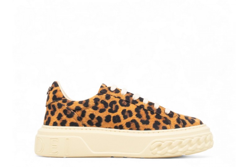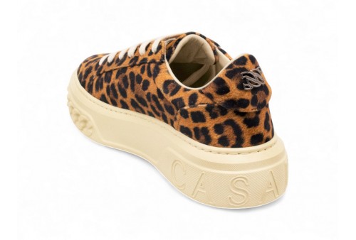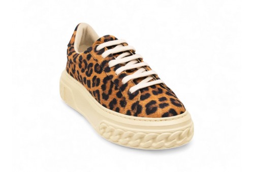 CASADEI Malesia Off Road Sneakers. L'iconica ginnica Off-road Malesia. In pelle scamosciata con stampa effetto leopardo, questa sneaker è perfetta per la vita frenetica e avventurosa delle donne moderne, rispecchiando l’estetica active con un tocco chic. La catena a bassorilievo, ormai iconica in tutti i fondi gomma Casadei, viene scolpita sul terreno come nei pneumatici dei fuori strada, per creare aderenza. Presente il logo C-Chain in maglia metallica.