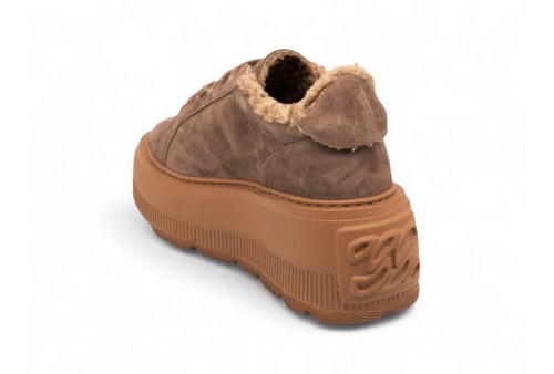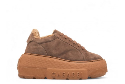 CASADEI Nexus Aplsenales Sneakers. Per le giornate più fredde, la Sneaker Nexus Alpsenales è la vostra alleata ideale. Una creazione dal fondo tecnofuturistico, in pelle scamosciata color cacao e un interno foderato in finta pelliccia riccia ton sur ton. Una zeppa ultra leggera dal design moderno che la rende un must have per la stagione. L'iconico elemento C-Chain così come il maxi logo laterale, conferiscono un elemento caratterizzante impossibile da non riconoscere alla sneaker di punta della Maison. Pelle scamosciata doppiata con finta pelliccia rasata riccia.Zeppa ultra leggera con logo Casadei esterno e logo C-chain sotto la suola 7cm