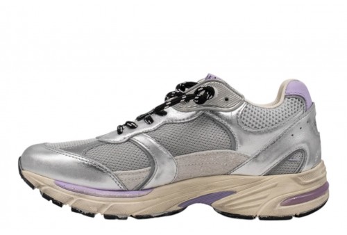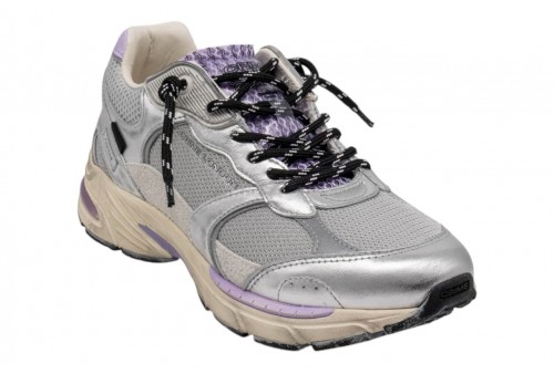 Tomaia in tessuto e lamina grigi, dettagli in suede bianco