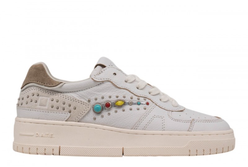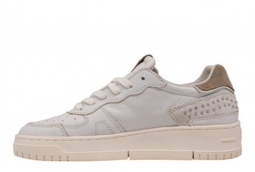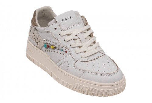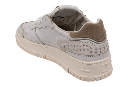 DATE DONNA W441-TP-SS-WH TORNEO PURE STUDS WHITE. Sneakers bassa in pelle martellata bianca con borchie.