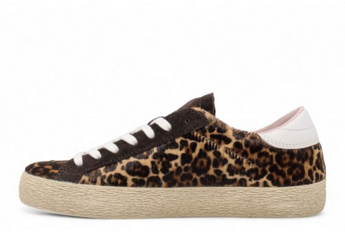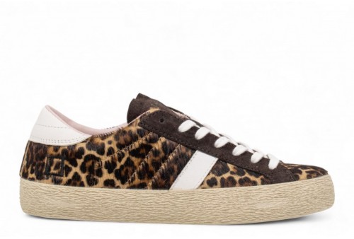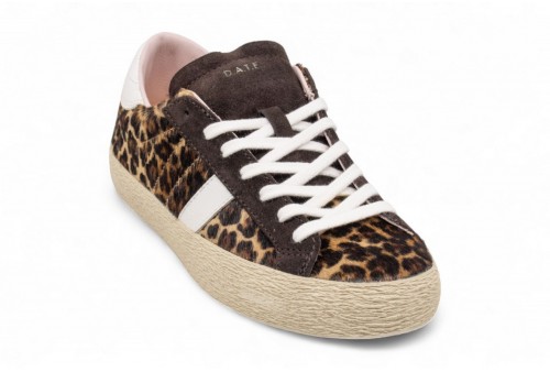 DATE HILL LOW LEOPARD BROWN. Sneaker bassa realizzata in cavallino leopard. Linguetta in suede con impressa la scritta D.A.T.E.Lacci in cotone.Logo quadrato ricamato lateralmente.Banda laterale in pelle colore bianco.Talloncino posteriore in pelle colore bianco.Fodera in pelle e spugna di cotone.Soletta interna rialzata di 2.5 cm per un miglior comfort.Suola in gomma alta 2.5 cm.