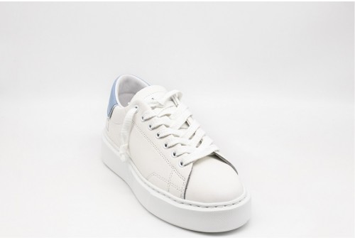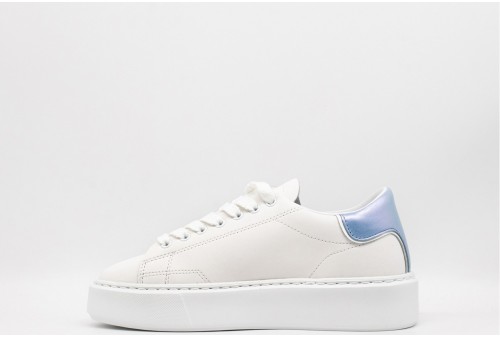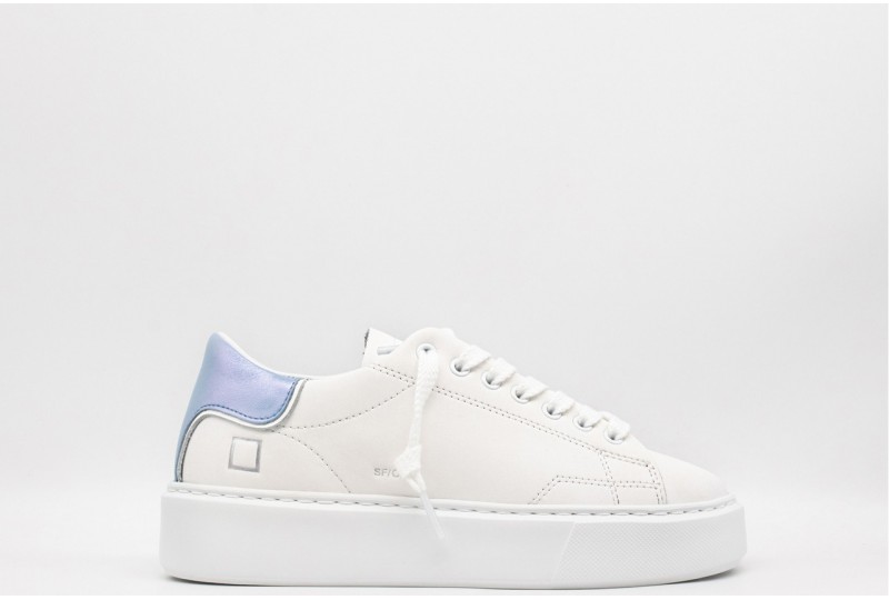 DATE SFERA CALF SKY. Sneakers bassa in pelle colore bianco. La scritta D.A.T.E. è impressa sulla linguetta. Logo quadrato impresso lateralmente. Il talloncino posteriore è in pelle colore SKY.