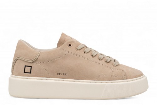 DATE SFERA SOFT NUDE. Sneakers bassa in suede colore beige. Sulla linguetta in pelle tono su tono è impressa la scritta D.A.T.E. I lacci sono in cotone e il codice e il logo quadrato sono impressi lateralmente. Il talloncino posteriore è in suede. Fodera in pelle e spugna di cotone. Il soletto interno è rialzato di 2.5 cm per un miglior comfort. La suola in gomma cucita è alta 2.5 - 3.5 cm.