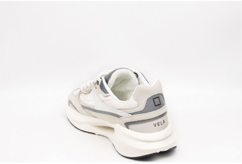DATE VELA MONO WHITE. Running sneaker in nylon bianco con inserti in suede in tono e dettagli rifrangenti.