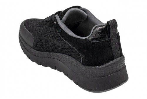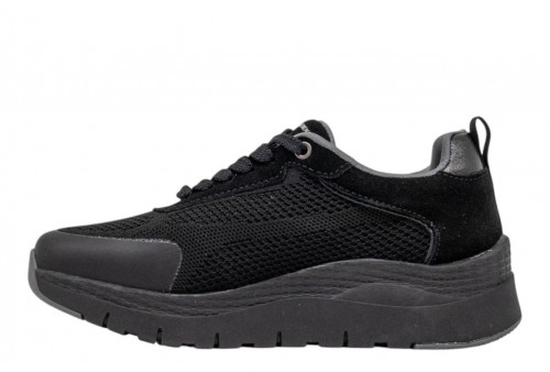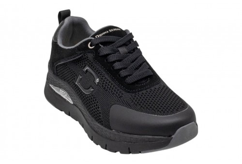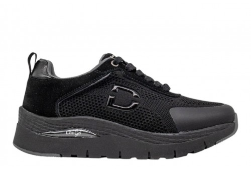 DONNA SERENA 145671DM NERO. Sneakers donna modello running realizzata in tessuto con dettagli in pelle. Logo laterale e sulla linguetta. Spoiler in pelle laminata. Chiusura con stringhe.