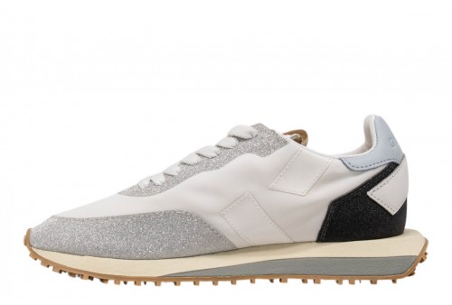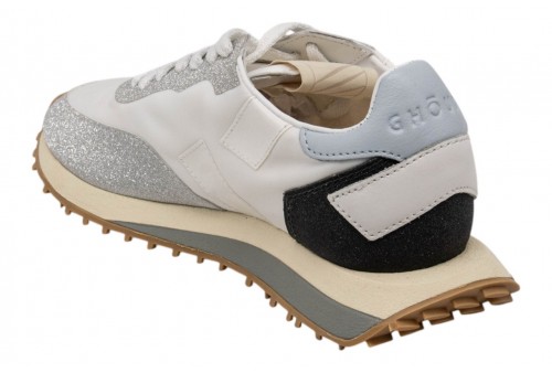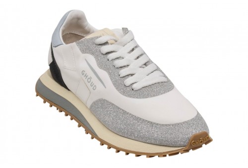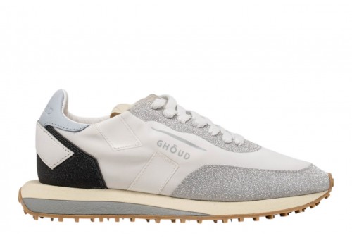 GHOUD VENICE DONNA SCLW NG07 RUSH STARLIGHT LOW GLITTER SILVER. Contemporanea fashion running, la sneaker Ghoud Rush Beloved Starlight presenta un design minimal caratterizzato da linee geometriche pulite. Tomaia in nylon con dettagli glitter. Iconico logo sul lato.