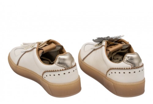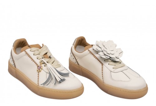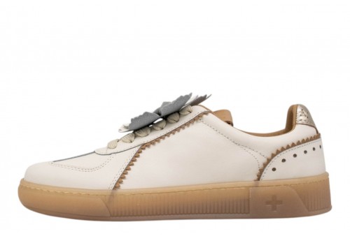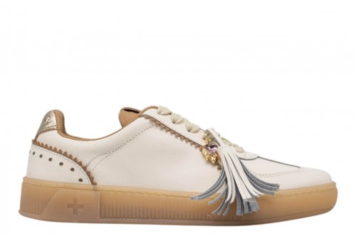 GIO+ SNEAKERS BLUE1021 COMBI MILK. Sneaker low cut realizzata in pelle con microinserti in pelle cuoio. Spoiler in pelle laminata. Linguetta con label logato in pelle cuoio. Passalacci diversi.