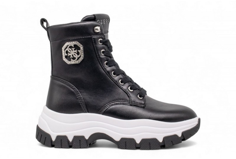GUESS Sneaker alta BENZON. Sneaker alta con zeppa realizzata in simil pelle. Dettaglio laterale 4G con applicazione strass.Scritta logo frontale, triangolo logo su suola. COLORE: NERO