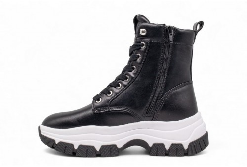 Chiusura con stringhe e cerniera laterale.