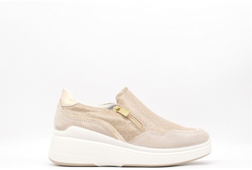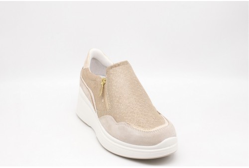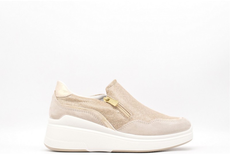 IGI & CO Sneakers con zeppa.Sneakers con zeppa in pelle scamosciata, inserti a contrasto in pelle dorata, zip che ne facilita la calzata. Tomaia: Pelle scamosciata Fodera: Tessuto Sottopiede: Pelle Fondo: Gomma Altezza: 4,4 cm circa Chiusura: ZIP LATERALE Collezione: Primavera/Estate Codice: 7653100