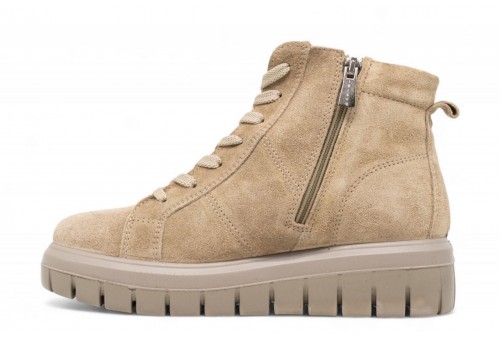 IGI E CO sneaker alta in camoscio. Questi scarponcini dal design moderno sono la scelta perfetta per affrontare l’inverno con stile e comfort. La suola alta e robusta garantisce stabilità e un look deciso, mentre il sottopiede estraibile in memory foam offre un'ammortizzazione personalizzata e una sensazione di benessere che dura tutto il giorno. Versatili e pratici, si adattano perfettamente a ogni look casual o urbano. COLORE: biscotto