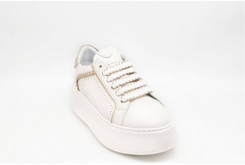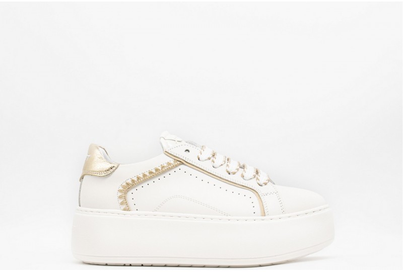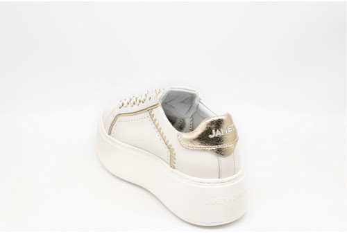 JANET & JANET Sneakers donna. Brillano in ogni dettaglio! Queste sneakers platform uniscono una tomaia in pelle bianca e un profilo metallico che cattura lo sguardo. I lacci intrecciati aggiungono un tocco di stile deciso, mentre la suola assicura comfort e stabilità. Perfette per dare un twist luminoso ai tuoi outfit, dal giorno alla sera!