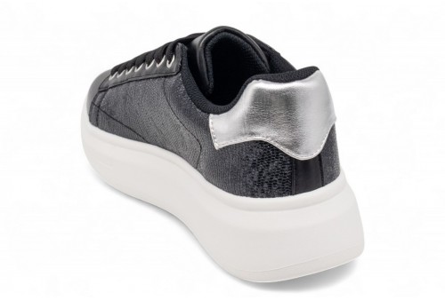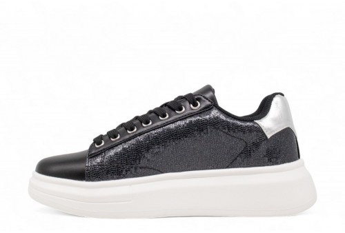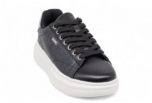 LIU JO SNEAKER BABOL 01 . Sneaker realizzata in pelle laminata nera con talloncino in pelle laminata silver. Logo in metallo. COLORE: NERO