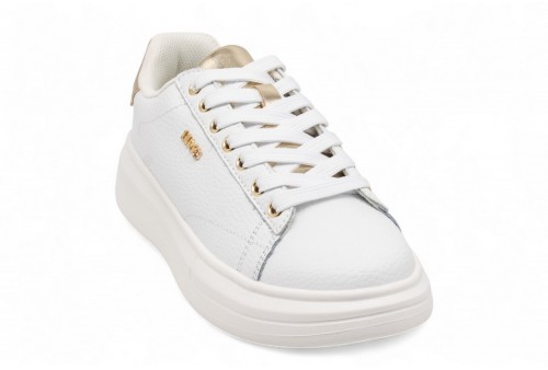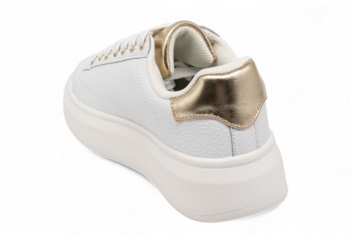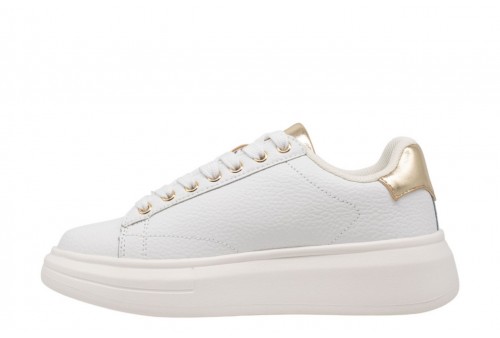 LIU JO SNEAKER BABOL 01 . Sneaker realizzata in pelle bianca con talloncino e linguetta in pelle dorata. Logo in metallo. COLORE: bianco/ORO