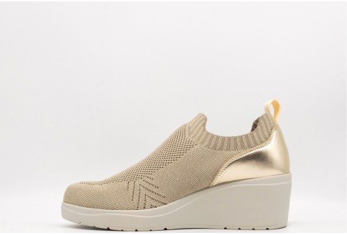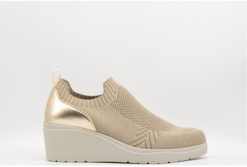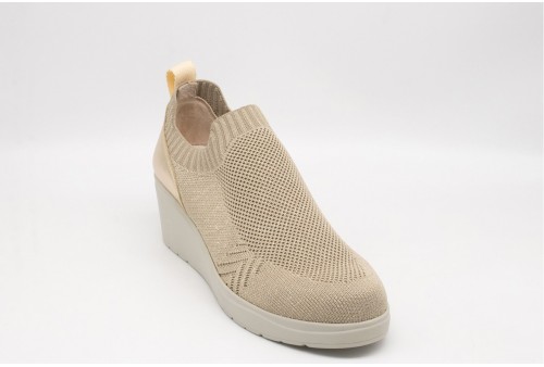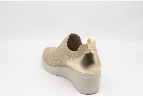 MELLUSO Sneaker slip on. Sneaker donna con zeppa realizzata in tessuto elastico con inserti in pelle laminata al tallone . Da infilare. Colore: beige . Tomaia: tessuto e pelle Fodera: Pelle Sottopiede: Pelle Fondo: Gomma Altezza: 4 cm circaChiusura: con Cinturino Collezione: Primavera/Estate Codice: k53013