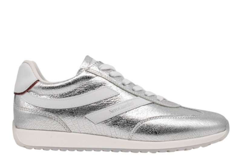 NERO GIARDINI donna E615163D/414 CRACK METAL argento . Sneakers NeroGiardini, personalità e stile unico. Le calzature NeroGiardini sono realizzate in Italia con materiali di alta qualità, utilizzando le più recenti tecniche di artigianato. Ogni scarpa è il risultato del know-how artigianale tramandato di generazione in generazione. Tutti gli stili sono progettati per offrire un comfort versatile durante tutto il giorno, al lavoro o in una serata speciale. I design di NeroGiardini sono sempre ispirati a nuovi stili, le sue scarpe sono sempre di tendenza e uniche nel loro genere. La collezione di borse di NeroGiardini: una gamma che si abbina alle tue scarpe, per un look impeccabile Made in Italy. Oltre alle capacità di assorbire il sudore e asciugarsi rapidamente, che mantengono il piede asciutto in tutte le condizioni meteorologiche, le solette in poliuretano DRY-GO® ora presentano anche la innovativa funzione Memory ad alto assorbimento degli urti, che si adatta delicatamente al piede garantendo comfort e benessere. La produzione Made in Italy delle calzature NeroGiardini è etichettata con la bandiera stampata sulla suola e sulla confezione.