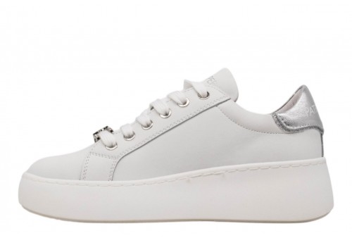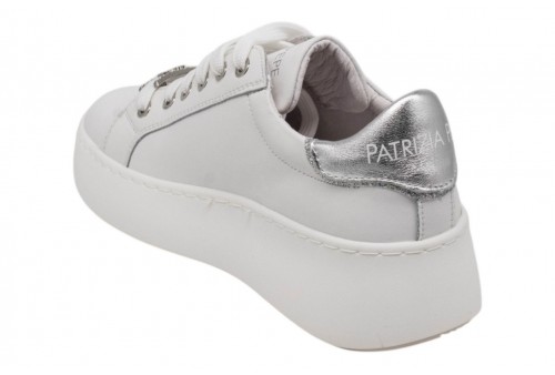 PATRIZIA PEPE donna sneaker PPJ350.30 VIT. BIANCO. Sneaker platform realizzata in pelle con logo laterale in metallo dorato. Passalaccio con applicazioni strass.Spoiler in pelle laminata. Logo al tallone.