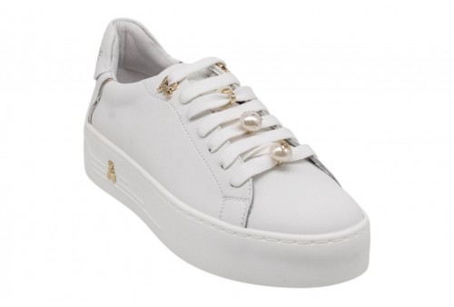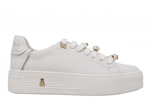 PATRIZIA PEPE donna sneaker PPJ358.27 VIT. BIANCO. Sneaker platform realizzata in pelle. Passalacci con perle. Logo al tallone.