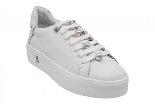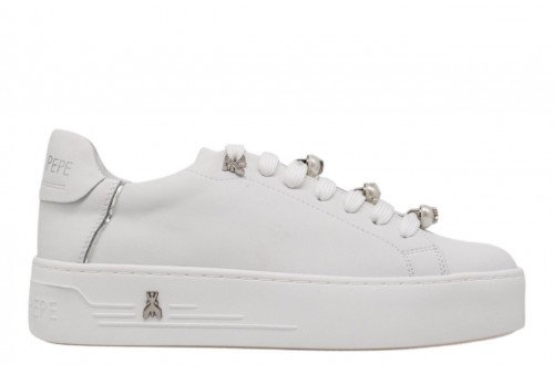 PATRIZIA PEPE donna sneaker PPJ358.30 VIT. BIANCO. Sneaker platform realizzata in pelle. Passalacci con perle. Logo al tallone.