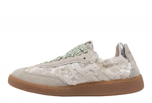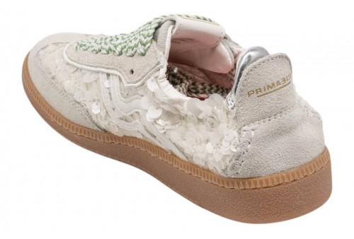 PRIMABASE donna BORG 51501/024 SNEAKERS BIANCO. Questa sneaker a cassetta unisce design romantico e massimo comfort quotidiano. Realizzata con un mix di pelle scamosciata e tessuto con paillettes per un effetto iridescente, si distingue per il suo look originale e luminoso, perfetto per chi desidera una scarpa casual ma sofisticata. L’elastico posteriore garantisce una calzata flessibile e pratica, adattandosi al piede e migliorando la vestibilità durante tutta la giornata.