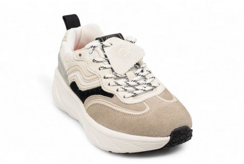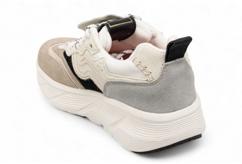 PRIMABASE SNEAKERS FUJI DONNA. Combo mix di materiali e colori in armonia tra loro per creare una sneaker running dal carattere vivace. La punta a coda di rondine le conferisce un animo vintage che si fonde con il suo stile contemporaneo e metropolitano. Il fondo è leggero e morbido per una calzata extra comfy.Tirante posteriore in tessuto. COLORE: GRIGIO