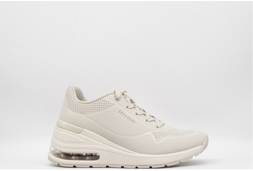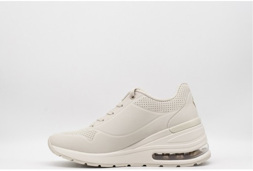 SKECHERS Million Air - Elevated Air. Migliora il tuo stile con un comfort arioso in Skechers Street Million Air - Elevated Air. Questa sneaker alla moda con zeppa con lacci presenta una tomaia sintetica in durabuck con una soletta Skechers Air-Cooled Memory Foam e un'intersuola Skech-Air visibile.