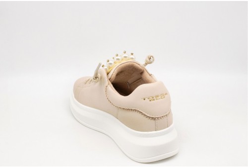 TOSCA BLU SNEAKER CON PERLE BELLATRIX. Sneaker con platform realizzata in pelle con linguetta impreziosita da perle. Monogramma traforato sul lato. Logo al tallone. COLORE: BEIGE