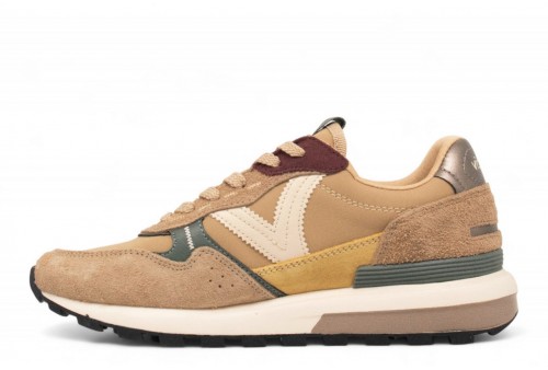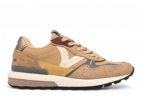 VICTORIA SNEAKERS LUNA CROSTA DI CUOIO BEIGE. Sneakers da donna realizzate in nylon morbido con inserti in crosta di pelle tono su tono e dettagli sintetici. V laterale bianca e inserto posteriore metallizzato. Suola bicolore e battistrada con rilievi antiscivolo con logo, che favorisce una migliore presa. Stabilizzatore nel tallone. Inoltre, includono una soletta ergonomica estraibile e molto confortevole. COLORE: BEIGE