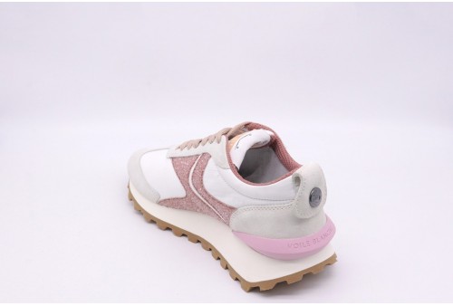 VOILE BLANCHE QWARK WOMAN. Cuore sportivo e look metro chic: ecco la nuova versione della sneaker Qwark con tomaia in tessuto tecnico soft touch e inserti in suede dalla elegante nuance salvia. Il logo laterale e la fodera completano la palette colori.