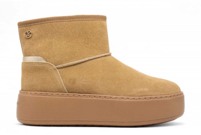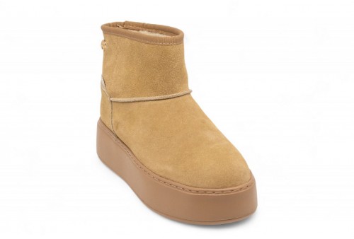 JANET E JANET STIVALETTO DODO CON ECOPELLICCIA. Stivaletto realizzato in camoscio con inserto in pelle laminata al tallone. Interno in ecopelliccia. Logo laterale. Suola in gomma. COLORE: CUOIO