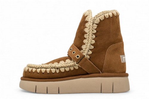 MOU Bounce boot buckle strap. Il bounce boot di mou con fibbie è sapientemente realizzato a mano, in vera pelle di montone double-face estremamente calda, cuciture in lana all'uncinetto, tallone rinforzato e una suola esterna in EVA & gomma. Incredibilmente confortevole e resistente.