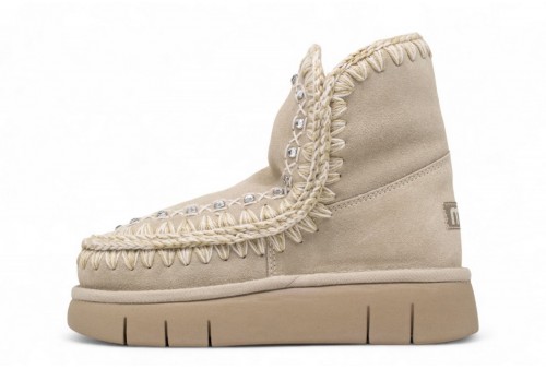 MOU Bounce boot STRASS.Il bounce boot di mou con dettagli in strass è sapientemente realizzato a mano, in vera pelle di montone double-face estremamente calda, cuciture in lana all'uncinetto, tallone rinforzato e una suola esterna in EVA & gomma. Incredibilmente confortevole e resistente.
