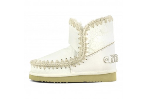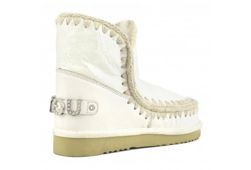 MOU Eskimo 18 Rhinestones Logo, lo stivaletto eskimo 18 impreziosito dal logo con strass incastonati è realizzato da artigiani esperti in splendido e caldo montone double-face, con cuciture in lana lavorate all'uncinetto, tallone rinforzato e una resistente suola esterna in gomma ed EVA. Incredibilmente comodo e resistente.