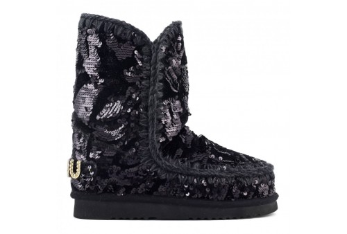 MOU eskimo 24 sequins, il nostro iconico eskimo mou sequins brillerà in un mix di velluto e lustrini cangianti. Rivestito in splendido e caldo montone double-face, con cuciture in lana lavorate all'uncinetto, tallone rinforzato e una resistente suola esterna in gomma ed EVA.