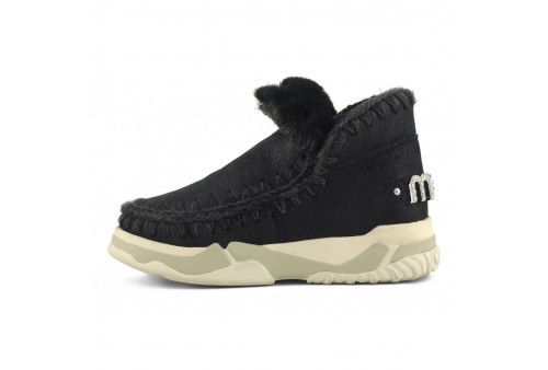 MOU Eskimo Trainer Rhinestones, La eskimo trainer presenta un logo con strass incastonati ed è realizzata in vero montone double-face e impreziosita dalle cuciture all’uncinetto caratteristiche del brand mou. Il tallone rinforzato e la leggera suola in EVA e gomma la rendono incredibilmente calda, comoda e resistente.