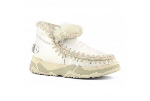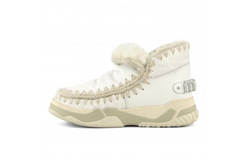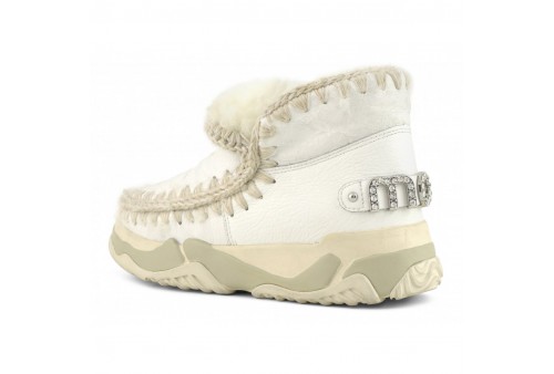 MOU Eskimo Trainer Rhinestones, l'eskimo trainer presenta un logo con strass incastonati ed è realizzata in vero montone double-face e impreziosita dalle cuciture all’uncinetto caratteristiche del brand mou. Il tallone rinforzato e la leggera suola in EVA e gomma la rendono incredibilmente calda, comoda e resistente.